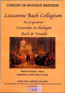 • 31 août 2025 à 17h00 : Lausanne Bach Collegium au Temple de Broye, Prilly