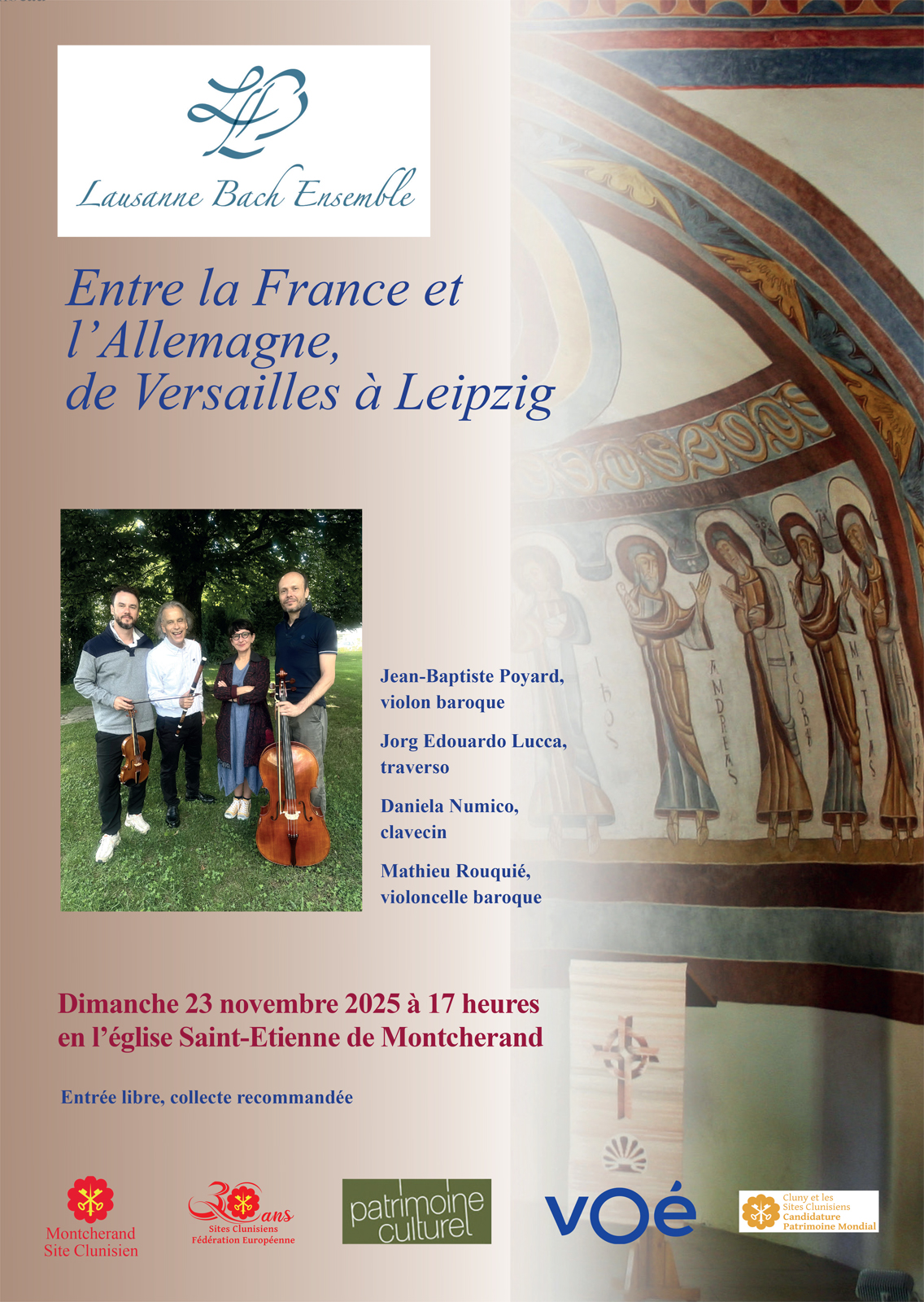 • 23 novembre 2025 à 17h00 : Lausanne Bach Ensemble à l’Eglise romane de Montcherand